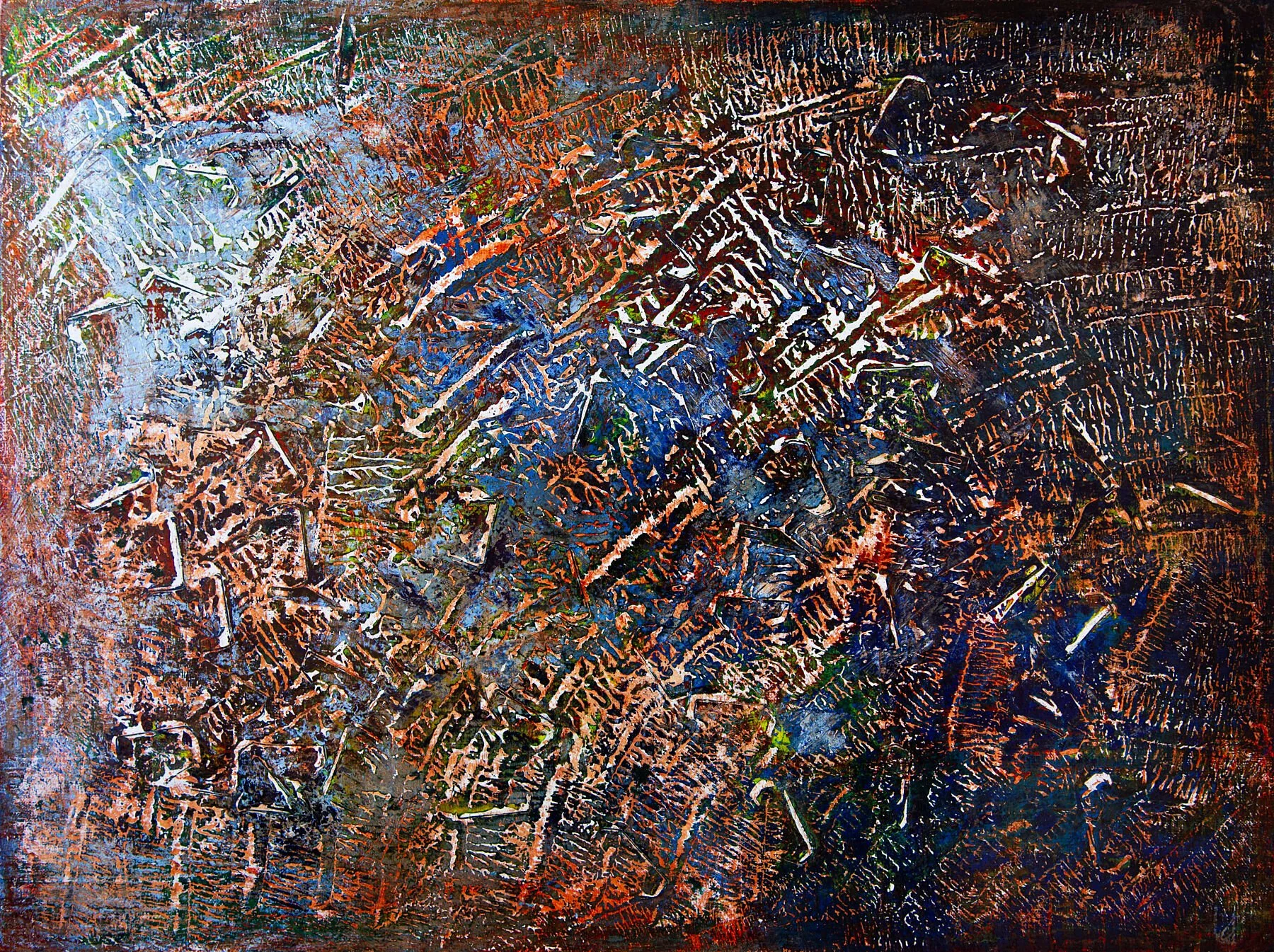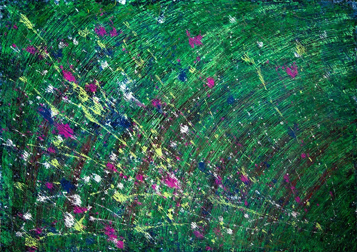 Abstract in nature, my work is intuitive and takes time, with many layers which all feed into the final, satisfying, piece of beautiful art.