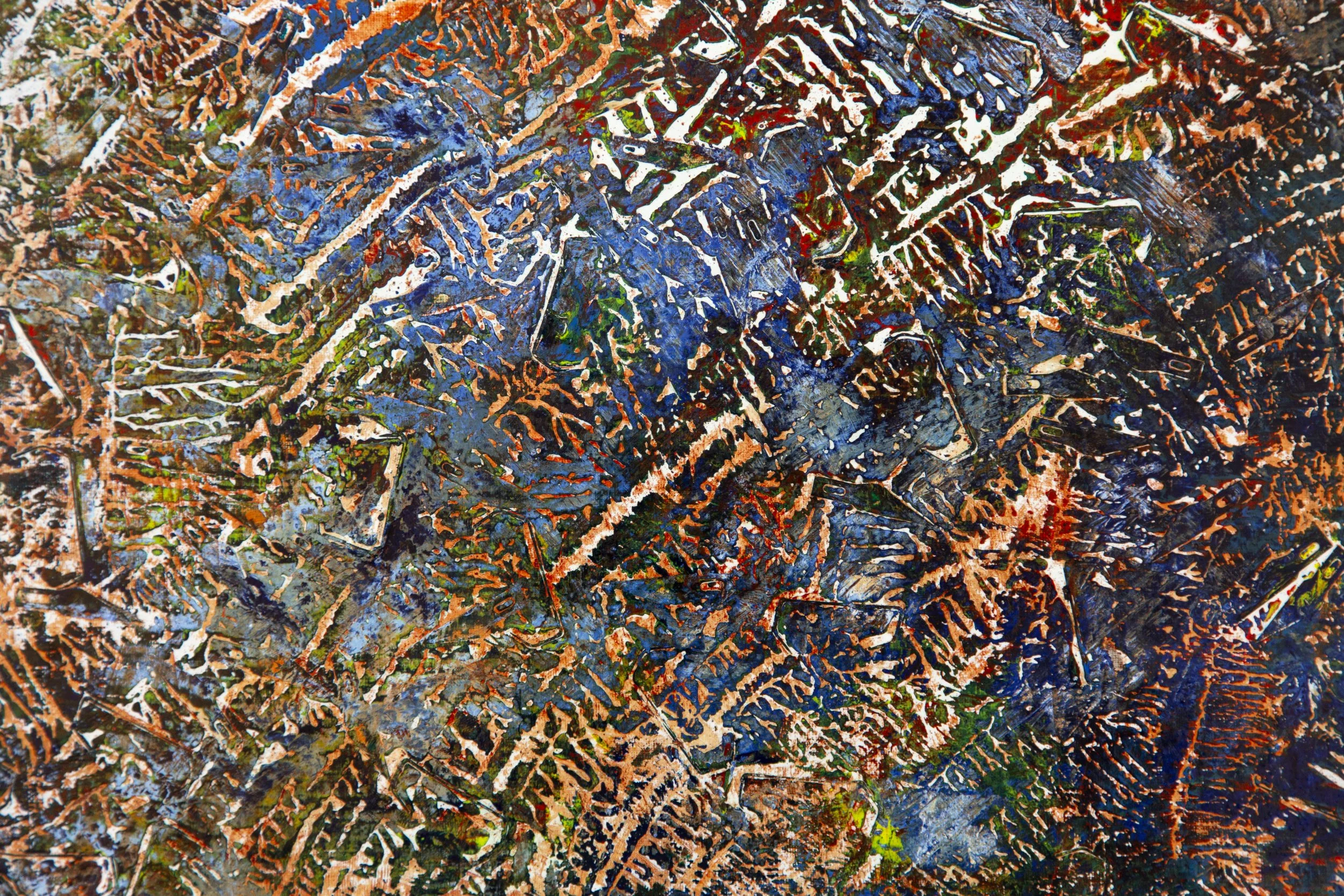 The painting is full of interesting textures & patterns leaving room for the individual to see what they see.